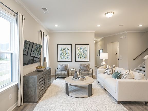 3 BDR and 3 full bathrooms with morning/sunroom, 10' ceilings and hardwood floors, quarts or granite, tiled shower. Two bedrooms down! Amazing pool and amenities to come. Yard work and exterior maintained by HOA .
