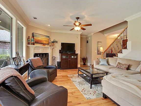 Greatroom design w/open floorplan, corner fireplace & wall of windows offers abundance of natural light overlooking inviting patio w/landscaped back yard, pond & green space. Kitchen features granite counters, snack bar, stainless appliances plus gas cooking. Amenities include wrought iron staircase, crown moldings & huge master bath. Popular subdivision with club house, community pool & ball fields.