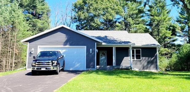 New construction 3 bedroom 2 bath ranch home with 2 car attached garage. Composite covered deck, covered front porch, blacktop driveway, seeded lawn. Ensuite includes double vanities, large walk in closet and tiled shower with glass door. Main level laundry, open concept kitchen with large peninsula and pantry. LVP flooring throughout main level. Secluded, tree lined back yard.