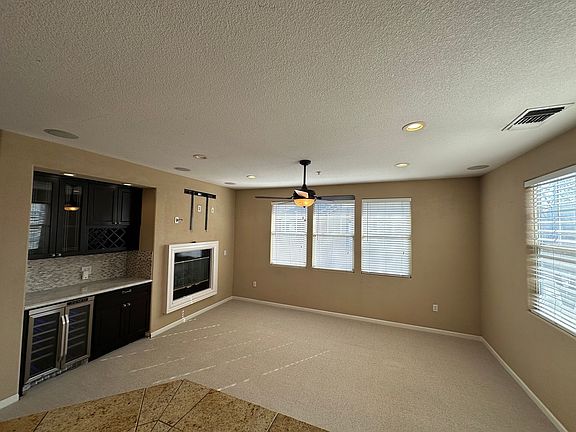 2 bed 2 bath, apx 1,211 sq ft, corner unit with attached garage. Large, light and bright living room, with plenty of windows, custom built-in bar and wine fridge, and push button gas fireplace. Large kitchen with plenty of counterspace and cabinets. Large en-suite bedroom with dual sinks, and walk in closet. Inside laundry with washer and dryer included. Central air conditioning and forced air heating. Attached two car garage. Community pool and playground.
