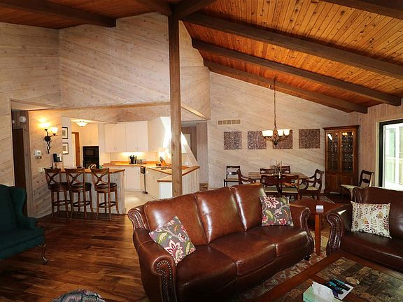 Perched on a ridge within Birchwood Farms Golf & Country Club is this cozy three bedroom, three bath home situated on a two acre lot. Convenient layout features include: main floor master with attached full bathroom, additional main floor bedroom (all bedrooms have slider door outdoor access) and a three-quarter bathroom just down the hall. Also on the main is an excellent open concept floor plan with exposed beams throughout the living area, dining and kitchen (with extra tall ceiling and high windows) and a beautiful field stone wood-burning fireplace in the heart of it all! Accessible from the dining room, living room and both main floor bedrooms, is a sizable deck where it's common to view an array of birds and wildlife. In the lower level is the third bedroom, a three-quarter bath and large walkout family room with slider door. New flooring in bedrooms, living/dining/hallways, upstairs baths and stairwell in 2019; new hot water heater and central air conditioning added in 2020. Amenities included with a purchase and monthly dues in Birchwood Farms Golf and Country Club are: 27 holes of pristine golf, tennis, pickleball, bocce, heated outdoor swimming pool, fitness facility, pro shop, dining options including grill room, casual bar and three-way house, 24/7 security personnel as well as a multitude of social gatherings and groups throughout the year! Throughout Birchwood Farm's property are also walking/cross country ski trails. Being offered turn-key with a few exclusions. This home is currently in a vacation rental program; pre-existing rentals for 2021/2022 to be honored with Buyer receiving rental income for dates after closing. Buyer to pay one time initiation fee of $10,000 due to Birchwood Farms at closing.