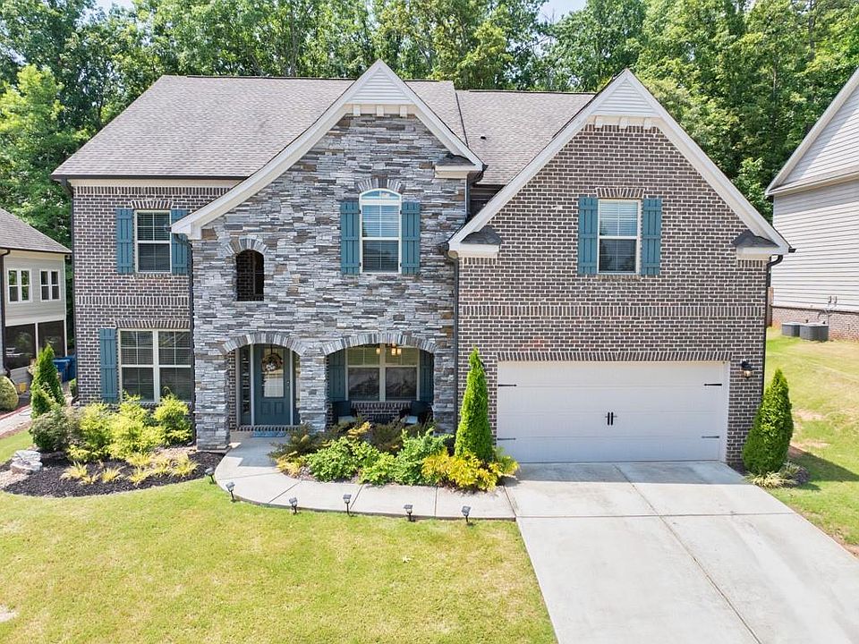 This charming home is located in the sought after Mill Creek High School district, just minutes from the Chateau Elan winery, and features a spacious 5 bedrooms and 4 bathrooms. Step inside to hardwood floors throughout the main living space which flows into the open floor-plan living room with an abundance of natural light and a gas fireplace. The stunning eat-in kitchen boasts white cabinetry providing tons of storage space, granite countertops, tile backsplash, walk-in pantry, and an oversized kitchen island. Find your oasis in the grand primary suite showcasing a tray ceiling, walk-in closet with a window, and a sitting area. The en-suite bathroom provides a spa-like feel with a luxurious soaking tub, tile shower, and three vanities! The bonus room on the upper level can be used as a game room, play room, movie room, and more! With a guest bedroom and bathroom on the main level and additional bedrooms and a jack and jill bathroom on the upper level you have the perfect place hosting overnight guests or extra storage space. Schedule your private showing today!