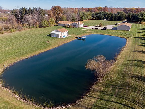 Wow! Totally renovated one-level house. Finished "pavilion" with living quarters, bed, bath...oh and a huge 4 bay heated garage with bath. Two parcels makes 10 acres with woods and pond. An amazing buy (over $450K to duplicate) with house and 2 other finished buildings. Excellent floor plan, all new inside, more. Privacy. Room to roam. Close to town. An outstanding country retreat!
