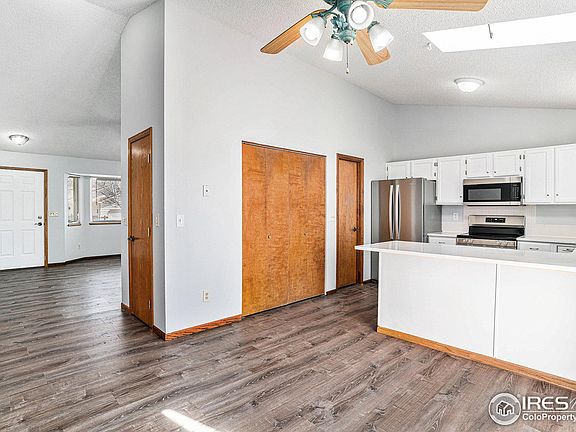 Back on the market, no fault of the sellers! Stunning view of the Rocky Mountains overlooking this waterfront home! This well maintained home has a new roof, gutters, exterior and interior paint, new flooring throughout, new quartz countertops and stainless steel appliances. With 3 bedrooms and 2 baths, this one level home is in move-in condition. Plenty of storage with a 3 car garage, RV parking, and an oversized crawl space. Great SW Loveland location with easy access to Mariana Butte, Estes Park, and downtown Loveland.