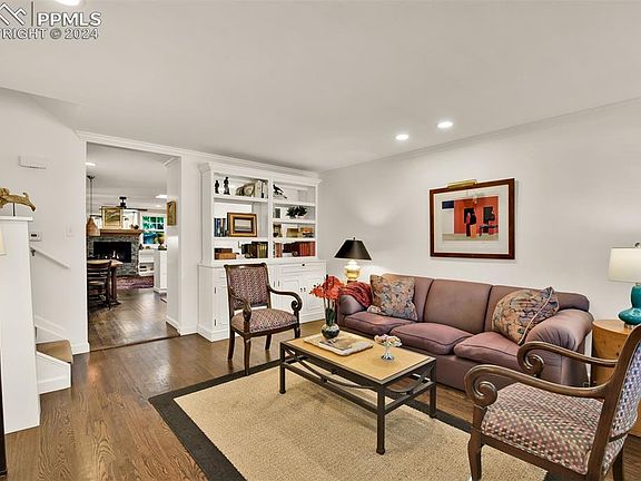 Welcome to this charming four-bedroom home on a quiet, tree-lined street in beautiful Colorado Springs! This traditional home has been thoughtfully renovated with superior craftsmanship and attention to detail. Its inviting atmosphere is a perfect cozy home base for outdoor living and adventure. The updated kitchen features modern appliances, ample counter space, a large pantry and plenty of storage, making mealtime a breeze. The custom built-in dining banquette is perfect for family dinners. The open first floor provides a warm and inviting space for entertaining with a beautiful fireplace, flanked by built-in bookcases, and access to the backyard. The home also features beautiful original hardwood floors and crown molding, adding to its traditional charm. The spacious and bright bedrooms offer plenty of room for relaxation and rest. The second floor is a true private retreat with two bedrooms and a full bathroom. On the lower floor, there is a large flexible room that could be used as a media room, 4th bedroom or office. There is another comfortable bedroom, and bathroom with custom walk-in shower creating a second private living area. The oversized attached garage has been outfitted with tremendous floor-to-ceiling built-in storage and workbench for home projects. Step outside and enjoy the backyard paradise, complete with mature trees and plants and a spacious Trex deck, perfect for outdoor dining and relaxation. The landscaping offers privacy and low maintenance, with automatic sprinklers and some xeriscaping, allowing effortless enjoyment of the Front Range climate. This home is centrally located in a desirable neighborhood with easy access to shopping, dining, outdoor recreation and all of the military bases. Don't miss out on this opportunity to own a piece of Colorado Springs paradise. Schedule a showing today!