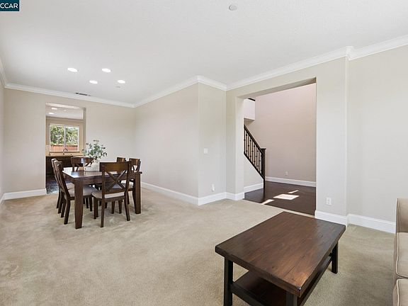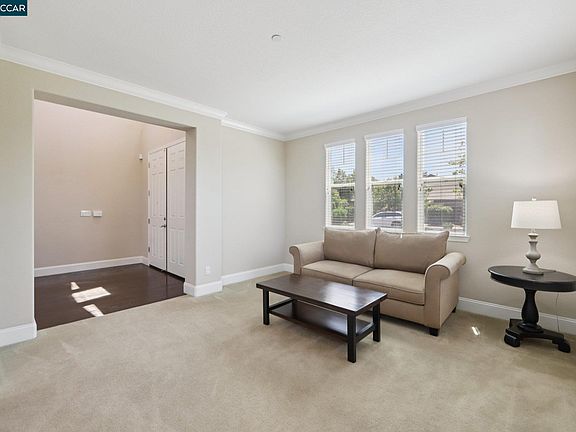 This is the one you’ve been waiting for! Welcome to this beautifully maintained, like-new home in the highly desirable Laurel Crest community. From the moment you step inside, you'll notice the attention to detail and pride of ownership throughout. The chef’s kitchen boasts an island with bar seating ideal for everyday living and entertaining with a generous walk-in pantry, ample cabinet space, and modern finishes. The open-concept living area centers around a cozy gas fireplace, perfect for relaxing evenings at home. The fresh, neutral paint makes it truly move-in ready with fans in every room for year-round comfort. This spacious home features elegant crown molding, rich wood floors, and high ceilings. Upstairs, you'll find a versatile loft space, great for a home office, media room, or play area. Retreat to the spacious primary bedroom with stunning Mt. Diablo views and a luxurious en-suite bath featuring a soaking tub, large walk-in shower, and dual vanities. Additional highlights include: 3-car tandem garage for extra storage or a workshop Upgraded iron staircase railings Laundry room with built-in sink and cabinets Don’t miss your opportunity to own this stunning home in one of the area’s most sought-after neighborhoods!
