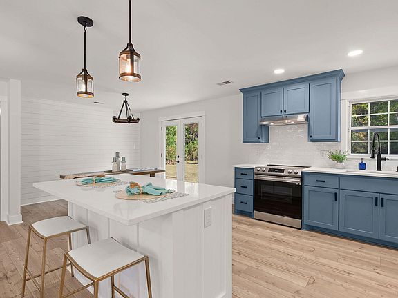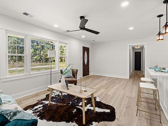 A COMPLETEY REMODELED 4 bed, 2 bathroom home on a huge lot in Pimlico steps away from the boat landing & no HOA! ALL NEW gorgeous flooring, doors, fixtures, designer trim, paint (inside & out), smooth ceilings, LED lighting, black seamless, gutters, custom shutters, 2 HVAC systems, hot water heater, all new new duct & electrical wiring throughout entire home!! A brand new, open, custom kitchen complete with island, quartz countertops, all custom cabinets, tile backsplash, farm sink, new stainless appliances & more! Can add refrigerator with acceptable offer. Lots of natural light with all vinyl windows - New custom tile, vanities, toilets, & more in bathrooms including a walk in shower in the master. The second vast main room, with wood burning fireplace, can be used as the 4th bedroomor secondary living space; it even has a separate, and brand new HVAC unit. The huge concrete slab in the backyard is perfect size to park RV's, boats or recreational vehicles. This home sits solo on what's currently a private road. No expense was spared in restoring this beautiful home - nearly EVERYTHING from foundation up is new . Located steps away from Pimlico's private neighborhood boat landing for your use and enjoyment.
