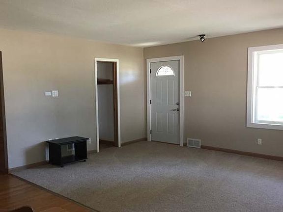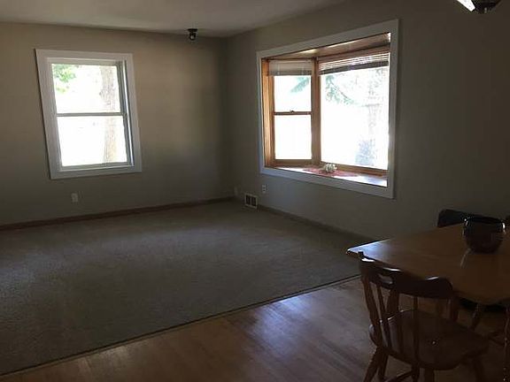 Enjoy affordable living in this ranch style slab on grade home with lots of recent updates including vinyl siding, soffits, gutters, shingles, entrance door and most windows. There is new carpet in the living room and one of the bedrooms. There are original hardwood floors in the dining room and 2 bedrooms. The kitchen and laundry/mudroom have newer vinyl flooring. The bathroom has a newer vanity and flooring. The large living room has a bow window facing south. Off the living room is a side patio/porch. There is a large backyard and a single detached garage with new overhead and side garage doors. Come take a look at this cute home today!