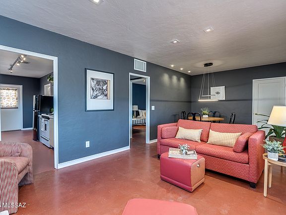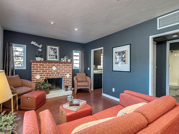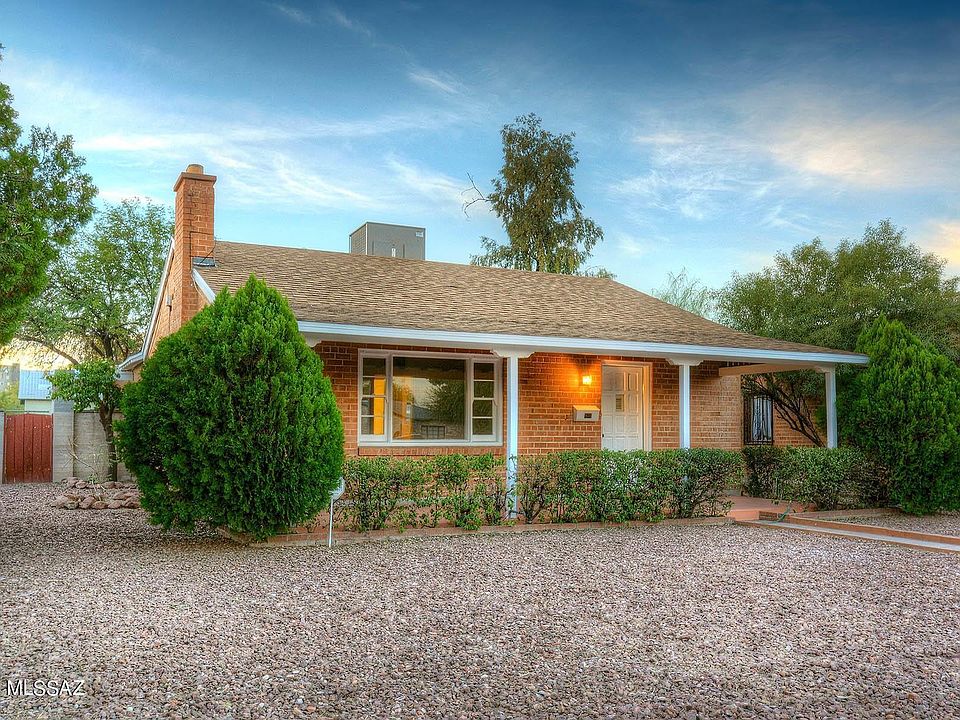 Move-in Ready!!! Very charming, updated, 1 bed, 1 bath, mid-century brick bungalow. Built in 1944, in the Historic Neighborhood of Jefferson Park. Perfect for UofA or Banner staff, student or a great investment property. Fresh exterior and interior paint with concrete and laminate wood flooring (no carpet). Inviting, wood burning fireplace warms the stylish great room adjacent to the eat-in kitchen. Spacious bedroom with large walk-in closet. Newer roof and upgraded lighting and electrical panel. Private, generously sized, walled in backyard with covered patio and work/storage room with attached one car covered carport with additional available parking. Close to UofA, Banner University Medical Center, theater, shopping and dining.