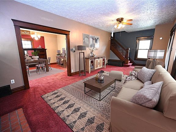 Welcome to 1610 E Washington St! If you are looking for additional space then look no further! Perfectly located on a flat lot with ample parking in the two car detached garage and paved driveway, this home is walking distance to the park and other amenities of the Upper East Side. Set inside the screen three season porch where you can bask in the natural sunlight. The seasonal shower is perfect for caring for your four legged friend. The cozy living room with decorative fireplace is accented with beautiful original hardwood trim and baseboard. The formal dining room offers a one of a kind, antique build in as it's focal point. The kitchen is not just one room but two! Offering a spot for a breakfast table or additional prep space. Each bedroom on the second floor is light and bright, providing amazing space in every room. Just when you think this home has provided you all you need, walk up to a fully finished attic with brand new wall to wall carpeting!