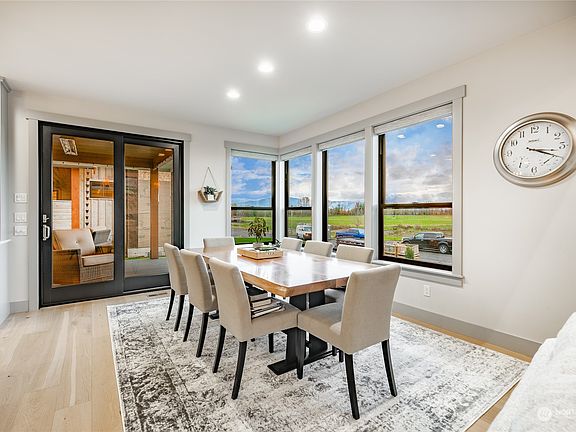 Incredibly gorgeous custom home. Near 1/2 acre with detached 1,997 sf shop with 800 sf ADU. Over 3,400 sf home with an attached 1072 sf garage. Soaring ceilings and stunning Mt Baker view are only the beginning. Primary bedroom, office, theater room, living room, butler pantry, kitchen and laundry ALL on the main level. This is the builders own home. Using his nearly 30 years of experience he created a masterpiece! The main floor open concept incorporates so many opportunities for entertaining. Everything from location, design, floorplan and finishes were meticulously chosen. The opportunities of the ADU are endless. Located in a newer neighborhood with high architectural requirements will ensure your investment is well protected.