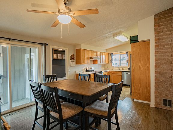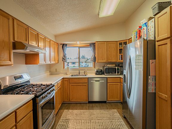 This East Medford home featuring over 1500 sq. ft of living space with 4 bedrooms and 2 bathrooms is located on a cul-de-sac. Enter through the new front door into a living room room with natural light and a fireplace. The kitchen has been remodeled and has plenty of cabinets and counters. Gorgeous stainless steel appliances and a stand up pantry. There is a large eating area located off the kitchen with sliding doors leading to the huge backyard. The master bedroom is located at the back of the home and has an updated bathroom. Three other large bedrooms and bathroom make up the rest of the home. This home is in move -in condition and has newer flooring. There is also a large inside laundry room. Outside you will find a huge .35 acre lot with RV parking and a 2 car garage.