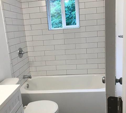 Newly updated light and bright apartment, wide plank pine floors, new bathroom and kitchen. Nice sized bedroom. Open kitchen, dining, and living area. Apartments are in seven acres of woods, 4 minutes to center of Woodstock. Common garden areas and fire pit/barbeque areas. No smokers. One unit will be available 9/1 and another one on 9/15. Pictures are of similar unit. Available unit has vaulted ceiling. Possible rent reduction for help with management. One year lease. Could be 9 or 10 month lease.