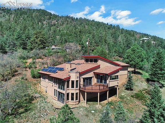 Live in the mountains with the convenience of downtown just 10 minutes away. This one owner home has been well maintained and built to last. The views are spectacular and almost too good to be true. You can see to Kansas as well as enjoy 360 degree mountain views, Garden of the Gods and City lights. No room in the house is without a glorious view. Windows all around and skylights let in the sunshine and warming light. Walk out to the deck from the main level to enjoy the views and mountain bird songs. So beautifully peaceful and quiet. The solarium with hot tub can be accessed from the huge master bedroom, the living room and the spacious lower level family room. The lower level is also a walk out from the solarium. The spiral wooden staircase adds so much beauty and character to this part of the home. All the rooms have vaulted or high ceilings. The kitchen floors are bamboo which will last forever and super easy to maintain. Large closets and tons of storage. The fourth bedroom is non-conforming without a closet so could be considered a flex room. There is also a den that separates the living area from the bedrooms which could be used as a library or office. This home is heated by active and passive solar backed by natural gas creating extremely low utility bills. Fifty year composite roof will help lower property insurance. To truly know this house is to love it! Walk to National Forest and Stratton Open Space. Easy to show. THE ACCESS AND MAILING ADDRESS IS 1603 SUNRISE LANE.