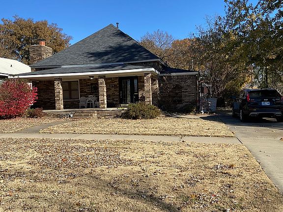 This darling brick home has hardwood floors throughout most of the home. Living room, dining room, Newly remodeled kitchen & appliances, new hot water tank, granite countertops, subway tile back splash, open shelving built-in. Large master bedroom, walk-in closet, large on-suite with claw foot tub, Corner shower, pedestal sink and built-in vanity. second bedroom with two single closets off main bath. Main bath has a two-sink vanity, tub/shower combo and double closet. Large area upstairs could be used for 3rd bedroom & office area or recreation room with door to attic. New roof, partially covered deck and large patio, large fenced-in back yard and side yard with two-story out-building suitable for a He-shed AND a she-shed. Full front porch and large double driveway. Two separate central heat/ air units. Great neighborhood and walking distance to downtown and the Pioneer Woman’s Mercantile!