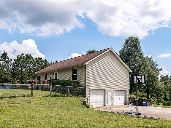 Beautiful setting in outstanding location! This home sits back off the road and offers plenty of privacy with its parklike setting! The floorplan is open and well lit. Lots of Kitchen cabinets and counter space, plus the seller is leaving all the kitchen appliances. On the main level, there are two bedrooms and one full bath. The first floor bathroom has heated tile floor. In the lower level, you'll find one bedroom/office (this room has no window egress) a family room, full bath, laundry room and 2c garage. This home was recently painted and will have brand new double pane windows installed by Sept 5th. Roof is 12yrs old. Outside you'll enjoy the views from the front porch or the pool area while kiddos play in the tree house or fenced yard. This property is located less than 2 miles form downtown historic Corydon and offers an appealing oasis of privacy and space. Sq ftg & room sizes are approx.