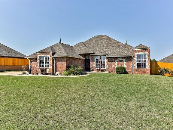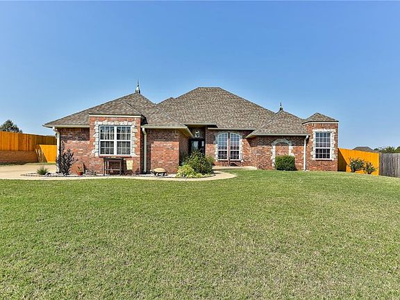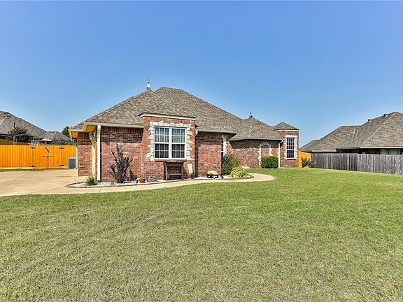 You'll enjoy the convenient location & comfortable neighborhood in this gorgeous home in the Woodsong addition. This home features a gas fireplace, granite countertops, formal dining space, and stainless steel appliances. It offers 3 bedrooms, and an office, or optional fourth bedroom. Two bedrooms & a full bath with double sinks are situated on one side of the home, while the master bedroom & bath are on the other side of the home. The master bedroom features a tray ceiling, while the master bathroom includes two walk-in closets, a walk-in shower, and a jetted tub. Enjoy the fully (new) fenced backyard, complete with an extra wide double gate. The backyard is perfect for kids and pets, with a large patio for entertaining right off of the dining area. The 3 car garage allows room for parking and extra storage, and the storm shelter, located inside the garage, adds additional security. With easy access to I-40, yet the appeal of a secluded neighborhood, this could be just your place!