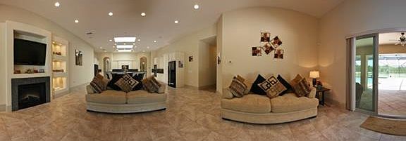 New Price!! Well Thought out custom built, Pool 'n' Pool home situated on almost 6 acres. As you enter into the main door you'll appreciate the Courtyard pool which has a pagoda rainfall and 2 Laminar Jets. Larger Pool in rear with Beach entry and an extra sundeck, gas fire pit with Conservation and Water views Private Pond makes this a wonderful retreat for the family who yearns relaxation, Open Floor plan with Split bedrooms, 5 bedrooms on main floor, the 6th bedroom is on the second floor with a screened in private balcony and equipped with a wet bar. Skylights in the Kitchen provides natural light. This is truly a chef's dream kitchen - all granite work surface, 2 refrigerators, 2 dishwashers, 2 sinks. Large utility room with 2 washing machines and 2 dryers. 2 offices. Cinema / Home Theater was constructed as safe room with all concrete walls and roof, equipped with sink and refrigerator. 120" screen, surround sound, Blue Ray and cinema style seating. Large emergency generator with automatic start to power house in event power outage. Equipped Games room includes a 92" screen and projector. Sauna constructed in cedar. 4 car garage, Independent zoned AC system. Please see to appreciate this well-built home constructed with the best materials. Choose to bring your horses as well. This centrally located home is within an hour's drive to either Tampa or Orlando International Airports and is within a gated community close to Disney, Shopping, Schools, Highways, Championsgate and Reunion Golf Course.