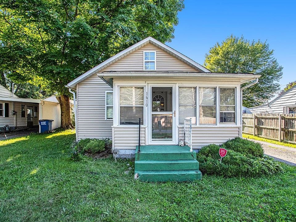 CUTE AND AFFORDABLE! This adorable 3 bedroom, 2 full bath home just needs a few minor details addressed to be simply perfect. The enclosed front porch will be your favorite spot for relaxing. Inside you'll appreciate the open concept living and dining rooms that flow right into the kitchen area. BONUS: a SECOND large living room is located in the rear of the home that leads to the fenced in backyard. The primary bedroom has a spacious FULL (updated) attached bath. Two other bedrooms, a finished laundry area with extra storage, and another updated full bath are also located main level. Attic and partial basement could be useful storage areas as well. Extended driveway for plenty of parking. Smaller yard for quick, easy maintenance. The detached 2-car garage would be much happier with a facelift. Convenient location, close to parks, schools, shopping, and restaurants. This property is currently a rental and has so much potential, come take a look!