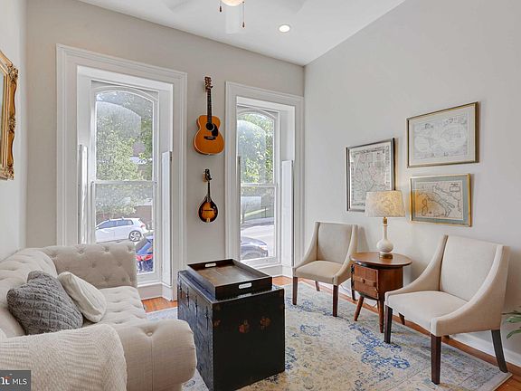 Fantastic value still exists  in Union Square! For this price, you get an updated, move-in ready 18 foot wide home with 2 primary suites, off street parking, 4 finished levels, and lots of original charm.  Walking up the marble staircase, you’ll open the handsome wood double doors into the vestibule before entering into the foyer. The random width hardwood floors on the main level set the tone for all the original, historic features of the home. The living room is highlighted by the decorative fireplace, massive windows that let in lots of natural light, tall ceilings, crown molding, and a half bathroom. You’ll be ready to entertain in the dining room with its own decorative fireplace and will seat 6 comfortably. The updated kitchen features an island with a breakfast bar overhang, tile floors, granite countertops, stainless steel appliances including a gas stove, and a converted fireplace that now functions as a bar. Off the kitchen is the cozy screened in porch with easy access to the fully fenced in parking pad that can also be converted back to green space. The second floor has 2 bedrooms, 2 bathrooms, laundry, and a den/ office area. The front bedroom has tall ceilings and an ensuite bathroom. The third floor has yet another primary bedroom with a large closet while the ensuite bath has a glass enclosed shower, clawfoot tub, and a double sink vanity. The finished basement adds utility as a movie, club room, or could function as a fourth bedroom, while the unfinished side of the basement is perfect for storage. Located right off Union Square park, a well maintained park with a central gazebo and mature trees. Conveniently located near downtown Baltimore, BWI airport, and the MARC train station. First time homebuyers could be eligible for up to $10,000 in closing assistance from Freddie Mac Borrow Smart Program. Ask the listing agent for more information!