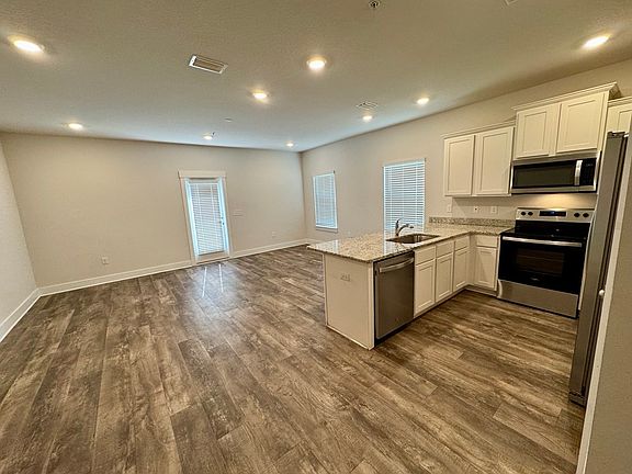 This gorgeous home is incredibly warm and inviting offering an open floor plan that's great for gatherings, tall ceilings and every inch is filled with natural light! The home includes a one-car garage and a private driveway. Because this is an end cap unit, you will also enjoy your own outdoor space with LOTS of additional greenspace right outside your backdoor! Access to the beautiful community pool and dog park is included in your rent and both are a quick walk across the street.
