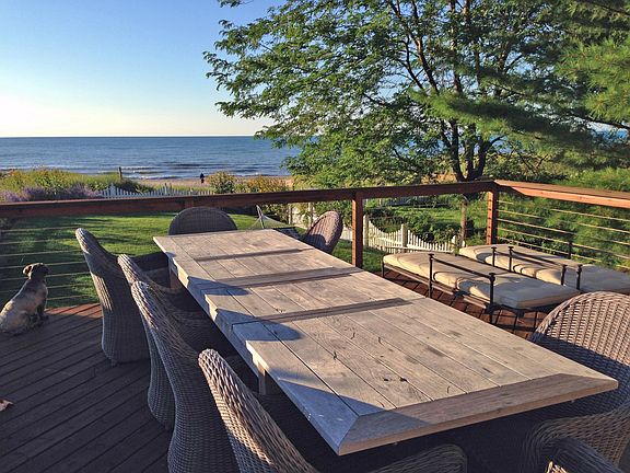 LAKE FRONT LIVING TRULY AT ITS BEST! This stunning home has been impeccably redone from upper level to lower level. Dark Douglas Fir Hardwood floors compliment white interior that truly says Beach! All new remodeled kitchen adjoins dining room to create terrific gathering space. Living room opens beautifully to expansive views of Lake Michigan just beyond your deck. Sliders allow easy access to the deck for dining or relaxing. Sunny afternoon? Use electric canopy to shelter the hot sun. Beach shower with both hot and cold water removes sand from feet and paws alike. Four upper level bedrooms, two with lake views. New bathroom with marble and glass tile work, walk in shower. Basement has been redone with every feature of fun in mind and door leading directly to patio! New full bath with only the very best features. Located between Stops 16 & Stop 17 showcases a very beautiful private beach area. Sea wall in place under sandy dune.