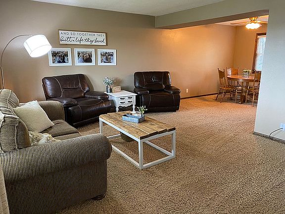 A must see!! Cozy 4 bed, 2 1/2 finished bath with additional unfinished downstairs bath, 2 car garage, 2 story on quiet corner lot that backs up to large green space...no neighbors behind! In walking distance to high school; close to elementary, middle schools and YMCA. Large covered patio for spending summer nights. Neutral finishes throughout. Open concept kitchen with peninsula and separate eating area along with dining room. New vinyl siding installed 2 years ago, 1 year old Insulated steel garage door, central vac on all levels and garage with new motor installed February 2020. Other upgrades include: tile floors in kitchen and all baths, updated full bath April 2021, composite granite sink in kitchen, Under cabinet lighting. All bedrooms hardwood floors with large closets and shelving. Very clean and well maintained! You can contact owner by calling/texting (308)830-1877.