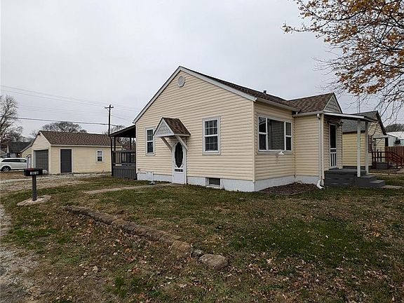 Many possibilities with this cute 2 bedroom bungalow with a full basement and 2 car detached garage on corner lot. Large living room with big picture window for lots of natural light. White kitchen cabinets with tiled countertops and ceramic tile floors. Plus microwave rangehood, glasstop stove and dishwasher all included. Oversized full bath. Small dining area leads to back covered 16x12 deck. Full basement with family room and office area and storage room plus a laundry room. Double the space for more area downstairs. Choice Home Warranty included at $98,500 price. Move in or purchase as rental property today!