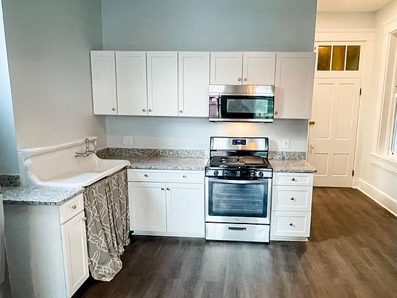 3F is a beautiful unit equipped with stainless steel appliances including refrigerator, gas range and stove, on demand water heater, a restored farm sink, as well as granite countertops.