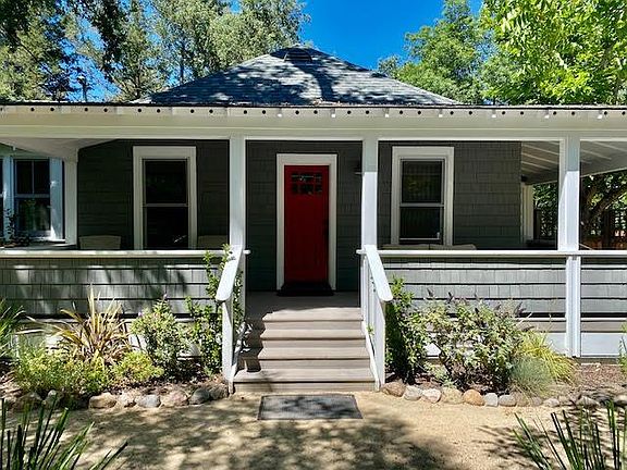 Quaint country 3 bed/ 3 bath bungalow built in early 1900's and exquisitely renovated in 2016, blends vintage charm with modern conveniences. A wrap around, covered front porch welcomes you into an open concept living and dining room, separate den and office, followed by a spacious gourmet kitchen featuring bead-boarded vaulted ceilings, center island with counter seating, high end appliances of Wolf, Bosch and Sub-Zero including a 105 bottle Subzero wine refrigerator. French doors open to a cozy screened in porch with ceiling fans and a fireplace, perfect for casual dinners and entertaining. Another set of French doors usher you out to the gorgeous landscaped back yard. Nestled in the garden is the equally charming 3rd bed and bath, guest house/studio with vaulted ceilings and a kitchenette. Garden architecture offers several outdoor entertaining areas; a flagstone patio, separates lounging arbor and a raised entertainment deck with an expansive outdoor fireplace. Just a few blocks from downtown Calistoga. Washer and dryer included. Central AC and Heat Generator when needed WiFi and surround sound included. Some additional furniture included Tenants pays water, Trash and PG&E No pets except Service Animals or Emotional Support/Assistance Animals Contact agent for Showings 1 Year Lease Tenant Pays or all Utilities except internet Washer and dryer included. Central AC and Heat Generator when needed Some additional furniture included Tenants pays water, Trash and PG&E No pets except Service Animals or Emotional Support/Assistance Animals Contact agent for Showings