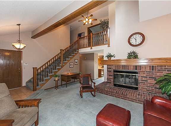 Spacious & well maintained 5BR 1 1/2 story home with amazing curb appeal. New Roof 2011. Tile entry. Living room with vaulted ceilings & brick fireplace. Dining Room with sliding doors leading out to deck. Fully applianced kitchen with breakfast bar, pantry & wood laminate floors. Master bedroom on main level includes walk-in closet & master bath with tub/shower. Upper level features 3 large bedrooms, & full bath. Full finished daylite basement includes family room with brick fireplace, bedroom (currently used as an exercise room), 1/2 bath, laundry room with laundry table/cabinets/laundry chute, & storage room with workshop & peg boards. Custom deck with bench seating w/lights, wood fence, large shed with workshop area & includes peg boards, gas grill, security lights, sprinklers (front yard & side yards), 2 car garage with heater & workshop area including peg boards. Home is wired for 4 exterior security cameras. All info deemed reliable but not guaranteed.