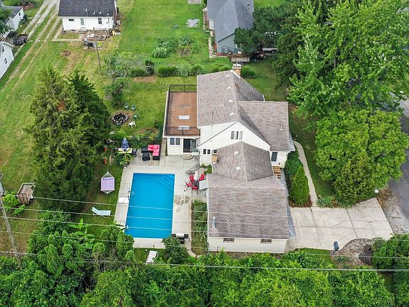 A spacious 1.5 story Cape Cod style house, complete with in-ground pool, on the dead end of a street, is looking for its next owner. The home is conveniently located a few blocks from Concordia Lutheran High School, Purdue University Fort Wayne campus, and near all the Glenbrook shopping and entertainment venues. Entering through the front door brings you into a large room, with a fireplace, that could be used for dining or relaxing. The living room is large and comfortable and flows into the 3-season pool room. The finished basement has a full bath and bedroom with a legal egress window exit, and plenty of storage space. The main floor has another full bath adjacent to a room that has been used as an office but is large enough for a comfortable size bedroom. Upstairs is the large primary bedroom suite with a 10'x30' walk out balcony. An additional bedroom plus another room that could be a small bedroom, nursery or large storage/closet completes the upper level. New dishwasher added Dec. 2023.