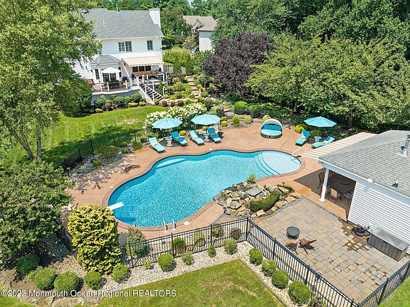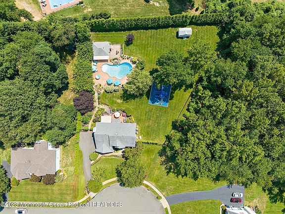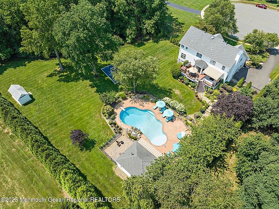 Phrases like ''Backyard Oasis'' and ''Resort Style Living'' do not do justice to this backyard. Gorgeous heated, salt-water Pool with waterfall, separate air-conditioned Pool Cabana w/ full bathroom, custom bluestone walkways and garden, and all surrounded by sprawling lawns and tall trees for complete privacy! This classic Colonial is situated at the end of one of the most desirable cul-de-sacs in Wall Twp, features a newer Design Line Kitchen w/ Thermador appliances, wide-planked walnut hardwood floors, finished Basement with Fitness Room and Play Area, full house Generator, security system w/ 10 exterior cameras, and so much more! Quiet and private street, turn-key home w/ lots of upgrades, and a backyard that will be the envy of everyone you know!