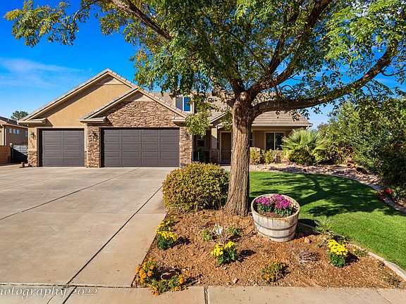 Lovely home w/lots of space inside & out Great private back yard w/ views! This home has been well cared for with lots of updates New flooring & paint throughout. Recently finished epoxy floors in the OVER SIZED 3 car garage! This home has plenty of room to park your toys 27'x33' Over sized garage w/8' tall doors & lots of extra parking on the side 9 minutes to Sand Hollow State Park. Dixie Power!