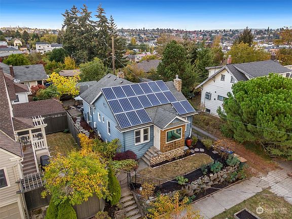 Timeless North Beacon Hill Craftsman home with 3BR/2BA features kitchen with granite counters & stainless appliances, spacious living & dining rooms with hardwood floors, gas fireplace, central A/C, solar panels, updated plumbing & electrical, and tankless water heater. Open floor plan on upper level plus income generating 1BR/1BA + den on the lower level with separate entrance. Private yard with mature garden, raised beds, fruit trees (fig & cherry) & 1-car detached garage. Prime location & high walk score just blocks from Light Rail Station, amazing restaurants (Bar del Corso, Perihelion Brewery, Homer), Jefferson Park, and shopping. Quick commute to Downtown, SLU & the Eastside. Zoned LR2 for a possible backyard cottage!