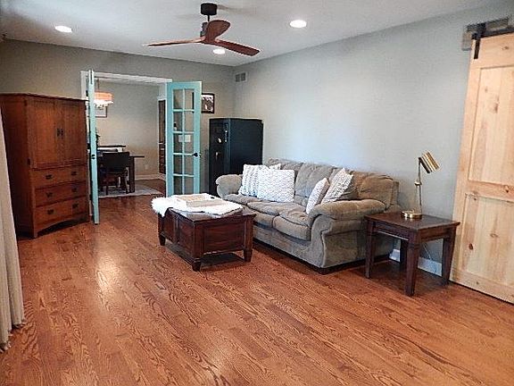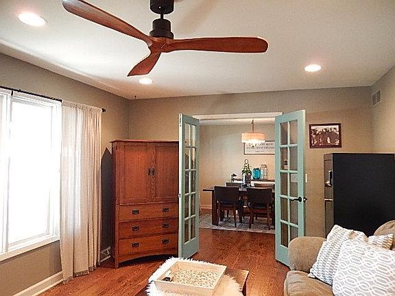 - Ceiling Fan(s), Wet Bar, Kitchen Island, Custom Cabinets