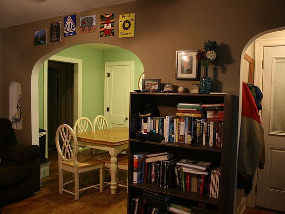 Step right in and immediately feel at home! This cozy and warm 2 bedroom has so much character and even more charm! Many updates within the last few years including only 4 year old windows, along with new H/W heater, electrical, plumbing, furnace & newer roof! Hardwood floors thru out in the dining room, both bedrooms and Living room! Pretty, large bay window in the living room that opens to the dining room. Plenty of cabinets in the semi-retro-feel kitchen with black & white ceramic tile flooring! The bathroom also has the black & white ceramic tile and features a built in medicine cabinet and a beautiful backsplash in the tub/shower combo! FULL unfinished basement with washer and dryer hook up and extra enclosed room in basement. This home is in a nice location, & situated on a nice size lot with a fenced in backyard with a 2 car detached garage! Come take a look at this adorable home!