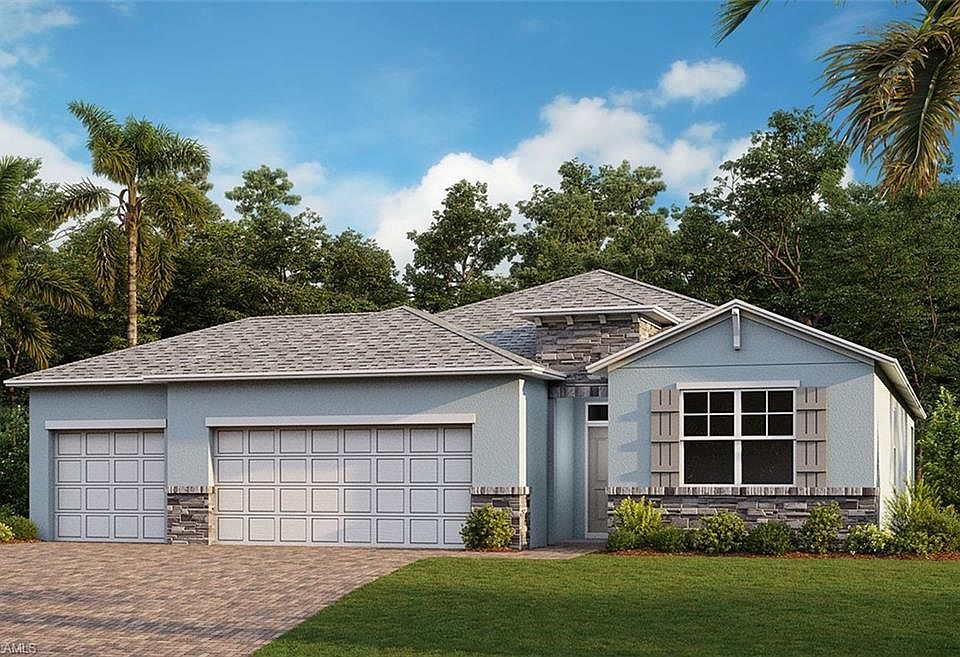 Under Construction. Great Cape location in the Trafalgar Neighborhood close to shopping, dining, entertainment and everyday conveniences and NO FLOOD INSURANCE REQUIRED (Flood Zone X). The DELRAY floor plan boosts 2,034 square feet of open and spacious great room, ideal for entertaining friends and family and includes 3 Bedroom + Flex Room and a 3-Car Garage. This is our DELRAY New Construction Home is located in a desirable SW Cape Coral in the Trafalgar neighborhood, close to shopping, dining, entertainment and everyday conveniences. All of our Signature homes come with 9’4” raised ceilings, granite kitchen & bath counters & Island, 42” kitchen cabinets, 18” tile everywhere except the bedrooms, carpet in the bedrooms, 8’ raised panel interior doorways, Whirlpool stainless kitchen appliances, (including a refrigerator), paver driveways and lanai, full irrigation system, professionally landscaped with Palm trees. We offer several varieties of financing options and closing cost incentives and savings. Be sure to ask about our closing incentives when you finance with our Preferred Lender. This home will be complete in the early 2024, just in time for Season!