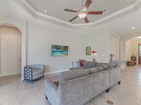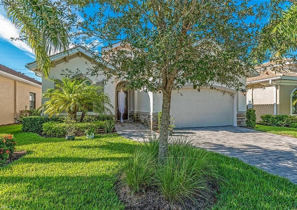 Located in the highly desirable Andalucia community of Naples, this 2016 built single family home will truly amaze you. As you step into the wide-open foyer you will immediately notice the high tray ceilings and open concept floor plan offering true three bedrooms and three bathrooms all located in the different ends of the house and offering privacy to its occupants. The home is updated with granite countertops, crown-molding, window shades, enhanced landscaping and extra storage in the garage. No carpets, all tile and wood laminate flooring in the bedrooms. Extended screen lanai with paved deck and room to add a pool. Andalucia is a gated community with low association fees that include landscape maintenance and CenturyLink high speed internet. For entertainment there is a community fitness center, basketball court, children's play area, pool and spa. Highly desired schools and excellent location with easy access to the beach, downtown Naples, and I-75.