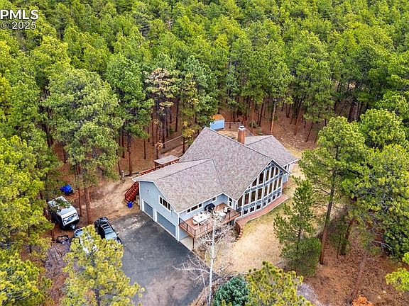 Virtual Tour & Custom Video Available – click the links above Welcome to where luxury and nature blend seamlessly. Nestled on 6.35 private, wooded acres, this tranquil retreat backs directly to the scenic trails of Fox Run Park (417 Acres), with nearly 4 miles of paths just steps away. If you’ve been dreaming of quiet luxury, surrounded by Colorado’s beauty, this home invites you to make that dream a reality. From the moment you step inside, you’ll be drawn to the breathtaking three-story atrium—the show-stopping centerpiece of the home. This architectural gem brings the outdoors in, creating warmth and a welcoming ambiance year-round. The open, floating staircase enhances the airy, modern vibe, offering beautiful views as you move through the home. The main level offers two spacious bedrooms—ideal for single-level living or guests—plus a bonus room perfect as an office, gym, or playroom, along with convenient main-floor laundry. Upstairs, the open loft overlooks the atrium and is complete with a private bedroom and bath, a serene retreat for guests or teens seeking their own space. The chef’s kitchen is designed for gatherings, featuring granite countertops, a double oven, and a large center island for prep or casual dining. Step outside to the front Trex deck and enjoy the quiet of the pines, or unwind on the back deck tucked into the trees. A private water feature nearby creates a calming space to relax. The lower-level family room with a wood-burning fireplace is perfect for cozy evenings, and the oversized three-car garage offers abundant storage. There’s even room to add a barn—imagine riding horseback directly into Fox Run Park! Enjoy ultimate privacy while being just minutes from shopping, dining, award-winning schools, and everything Northern Colorado Springs has to offer. Whether you're entertaining or unwinding, every space has been thoughtfully designed. This one is special and won’t last long, so schedule your private showing today! Welcome Home!