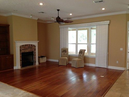 All brick home in Lynn Haven with extensive tile and wood flooring plus new carpet in bedrooms. Open floor plan boasting living room with fireplace, built-in's, hardwood flooring and surround sound. Formal dining room with custom windows, kitchen with stainless appliances and solid surface counters, breakfast nook with large custom windows, florida room, master suite with separate vanities, whirlpool tub and tile shower, intercom, security system. Exterior features all brick siding, oversized 2 car garage , sidewalk and fenced back yard.