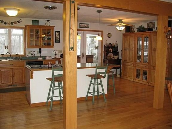 Too many amenities to mention. Unique wide open Tri!Kit w/ Hickory flrs, Island w/ blt-ins, vaulted ceilings,NFP,French drs to a tiled 3 season rm w/ sky lights & deluxe hot tub!Beautiful FR w/ back tiled wood burning stove. MBR w/ WIC. New furnace, new windows, gutters & more. Att 2.5 Gar gives new meaning to 'Man Cave' w/ all the comforts of Home.(heat,cable,windows etc..) Add'l 2.5 det.GAR, Pole barn w/ horse stalls & water,& so much more! Walking distance to Elementary School. A Secluded Wildlife Haven!