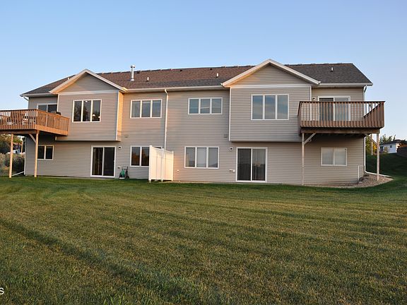 4 Bedroom, 3 Bath Ranch Style Townhome in N Bismarck. Spacious open floor plan has10 ft walls and vaulted ceilings, and lots of natural sunlight. The view out back is exceptional, overlooking rolling hills, coulees and beautiful sunsets. Main floor has 2 bedrooms including a master bath and large walk-in closet. There is main floor laundry and a full bath. Lower level has a very large open family room area, full bath and 2 bedrooms. Again lots of light, and great views with a walk-out and a landscape blocked patio. The home has recently been professionally painted top to bottom. Fresh and new. Garage features hot and cold water and floor drain. Enjoy ease of living with snow removal and lawn mowing being taken care of, as a shared cost with the association of 8 townhomes. The monthly costs are currently $100. There is additional guest parking available at Tyler Parkway dead end area adjacent to Valley Dr. Bismarck parks walking trail runs along the street. Great location. Owner is a licensed real estate agent.