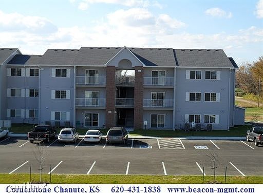 (616) 555-1212 - Cornerstone Apartments, Great Price - Great place to live! Chanute, KS See more details at Experience the newest apartment home living offered in Chanute, Kansas and the welcoming atmosphere of Cornerstone Apartments conveniently located at 1520 W. 4th Street. This centrally located property is within walking distance to the new elementary school. As soon as your arrive at our community, you will sense the passion in the workmanship and design as well as the quality of the interior apartments like beautiful stained wood cabinetry, designer two-tone paint, specialty lighting and all important name-brand appliances including your very own washer dryer. Outdoors your will find large open spaces, ample well lit parking areas, available garages and a large children's playground. Come experience the quality lifestyle at a Beacon Managed Community and see why Cornerstone Apartments offer the best apartment home living in Chanute. Cornerstone offers all of the following and more: Two and Three Bedroom Apartment Homes. Fully equipped kitchens with dishwashers and disposals. Self cleaning ovens. Custom Fit window blinds provided. Exterior balcony with storage. Private entry, no common hallways. Large dining areas & breakfast bar. All electric utilities. Individual hot water heating, furnaces and central air. Full size washer and dryer included in every home. Off-street parking and garages available. Small pets welcome, see manager for details. Walking distance to schools. Children's play area. On-site manager and 24 hour emergency maintenance. (RLNE1072920)