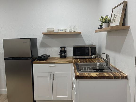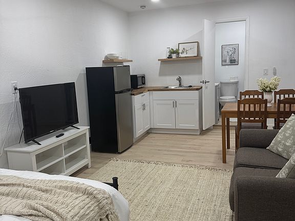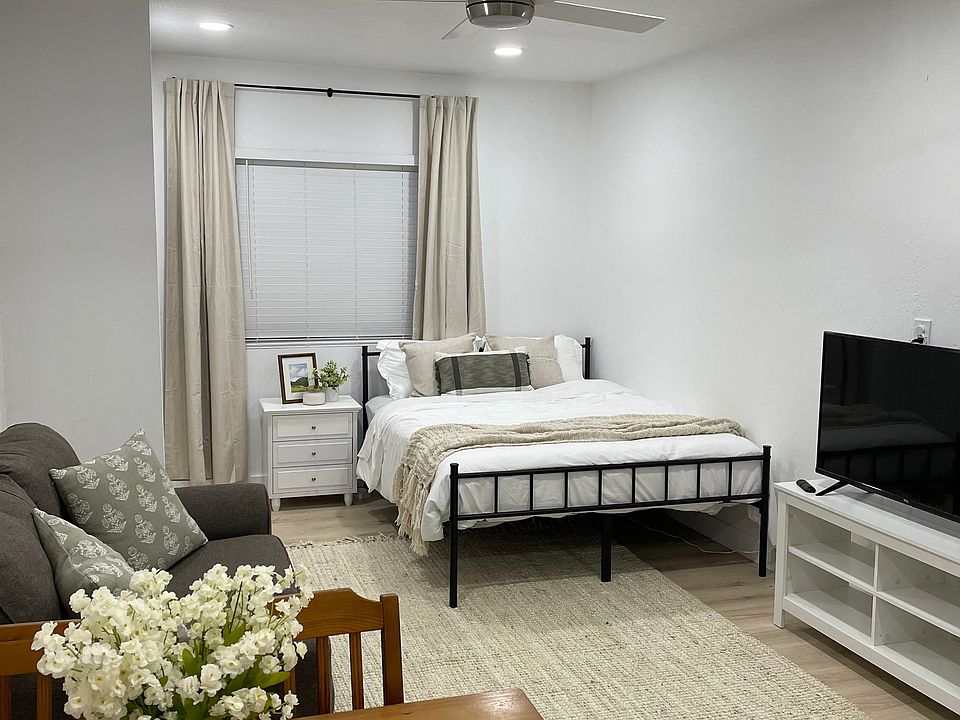 Fully-stocked kitchenettePrivate bathroomPrivate entranceBrand new bedCozy studioRoom-darkening window treatmentsSmart tv