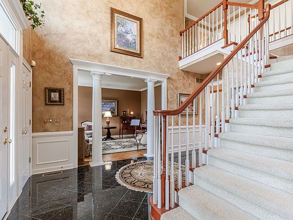 Accepted offer / taking backup offers. Quality custom built by Masterpiece Homes in a Premier subdivision with a private golf club, community pool, tennis courts and club house. Three sides brick and an attached Private Bathroom for Every Bedroom are just some of the custom features. The 9 foot high ceilings on the first floor plus the 18 foot high family room supplies a great feeling of space and natural light. Beautiful interior finishes includes Granite floor in the 2 story foyer, Newer Maple Hardwood floors in kitchen, dining room and living room, upgraded white wood wainscoting, pillars and crown molding. A unique Granite service bar with refrigerator, sink and area for bar stools is another custom feature. This is ideal for entertaining as it is conveniently located between the Family room and the Kitchen area. The gorgeous Kitchen provides upgraded Maple Cabinets with pull-out shelves, a concealed coffee bar area and lighted glass front Curio Cabinet display case. The Chef will enjoy the 6 Burner Gas cook top with downdraft exhaust, 2 built-in convection ovens and Exceptional Granite throughout. Walk out from the kitchen area or family room to the over-sized patio. Cookout on the built-in grill and enjoy the comfort of the pergola with built-in benches. The spacious master suite has his and her walk-in closet. The laundry room is conveniently located upstairs. There you will find built-in cabinets, a laundry sink, ample counter space for folding and the washer and dryer convey with the property. Other custom features include a walk-in wine cellar, 2 backup sump pump systems, 1 water driven system and 1 battery powered. A newer air conditioning system, many newer Anderson replacement windows, invisible fence, security system and a new water heater in 2019 awaits your review.