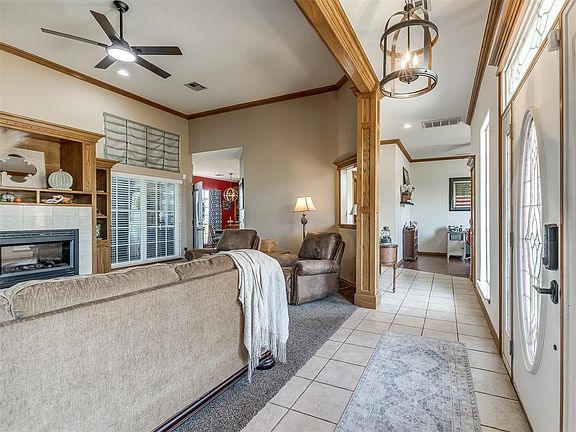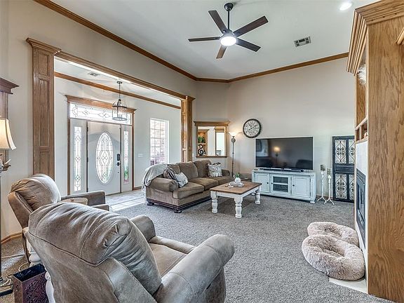 Experience comfortable living in this 3-bedroom, 2-bathroom home located atop a hill within a friendly neighborhood in Blanchard, Oklahoma. Set on approximately 2.5 acres of land lined with mature trees, this property offers a peaceful retreat while keeping daily conveniences in reach. Enjoy scenic views from this elevated location, perfect for taking in sunsets or relaxing on the front porch. Be part of a secure and close-knit community within the gated neighborhood, offering a sense of safety and peace. The property includes a practical 16'x20' shop with a sturdy concrete slab foundation, providing space for hobbies, storage, or projects. Embrace the shade and beauty throughout the property under the beautiful solid cedar pergola, enhancing the outdoor space. Put your green thumb to good use with the already abundant 16'x75' vegetable garden. Inside this home there is an expansive layout of space that can be utilized for multi purposes that best suite your family's needs. Schedule your showing to check this one out!