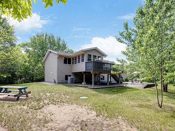 Great home on a beautiful private lot, surrounded by majestic mature trees! This 3 Bed/2 bath gem of a home is tucked away on 2.48 acres. Beautiful hardwood floors on the main level. Sun filled living room with bay window. Kitchen steps out to a newly finished deck and 3-Season Porch. Family room large enough to accommodate a pool table and game area - great for gathering! Two baths include a main level full bath and lower level 3/4 bath. 2-stall attached and 3-stall detached garages are both heated and insulated. Plenty of space for entertaining - enjoy bonfires, horseshoes, bbq on the patio or deck or simply take in the peace and serenity.