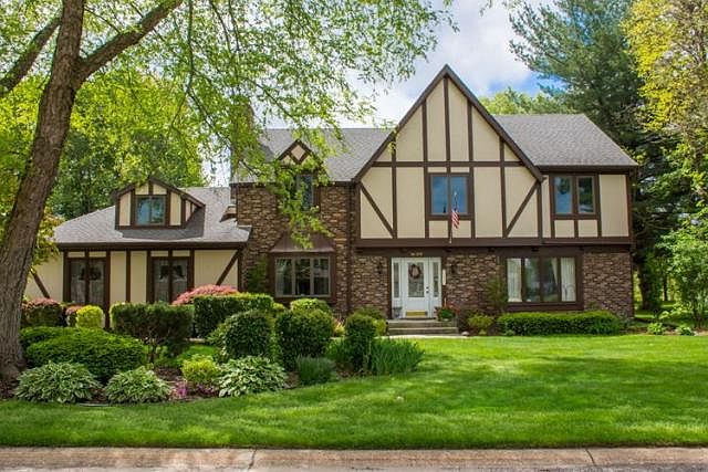 Open House this Sunday, November 4 from 2:00 to 4:00. Welcome to your new Home! This English Tudor Style Home has been very well maintained and has lots of charm and curb appeal! New concrete driveway and 3 Car Garage. Professional landscaping and Sprinkling System. Large deck in back yard overlooks the golf course includes the Gazebo! Large Patio is perfect for BBQ's and entertaining, the fence provides added safety with children and/or pets. Large Foyer open to Large Living Room and Separate Family Room with all brick fireplace and built ins. Large eat in Kitchen boasts Granite counter tops and Hardwood Floor and includes all appliances with convenient access to the spacious deck/patio and back yard. Main floor laundry with laundry chute from the master bedroom. This home has 4 larger sized bedrooms that all have Walk In closets with lighting. The Bonus Room over the garage connects to the Master En Suite measuring an extra 18 x 22 living space! Recently finished Lower level offers a complete living area including a Kitchen, Dining, Livingroom, Full Bath & an extra room that could be used as an extra bedroom or a Hobby Room. A handy workshop is another plus! HVAC System 1 year old. New carpet on the Main Level, Stairs, Hallway & Master on the Upper Level. Security System. Very nice, private, peaceful setting. Great location with newer sidewalks connecting to Heritage Square and conveniently located to shopping, restaurants, toll road and close to the Michigan Line! Schedule your showing today as this house has so much to offer. Come take a look and make this your Dream Home!