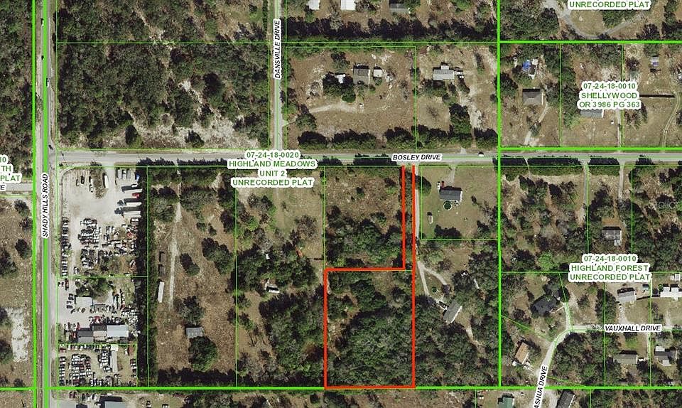 This 1.89 acre parcel is located on Bosley Drive, about one-half mile east of Shady Hills Road. The property is high and dry and is native land with lots of trees for privacy and the property is partial fenced. The zoning is Agricultural / Residential, which allows for single-family and mobile homes uses and there is no HOA or deed restrictions. The Seller has no information about the water storage tanks on the property and they are not warranted. The property is located in Flood Zone X, so flood insurance is NOT required. Please see the pictures for the survey. Only 15 minutes from Suncoast Parkway (FL-589), restaurants/shopping on Cortez Rd and 45 minutes from Tampa Int'l Airport, Tampa restaurants, shopping and beaches. Buyer/buyer agent to verify all information for accuracy including the school districts, flood zone, county zoning and land use. Owner has never occupied the property and is selling "as is". Property is located on the southside of Bosley Drive, about one-half mile east of Shady Hills Road. Access to the property is from two fence posts where the gate was and is two driveways west of 16212 Bosley Drive.